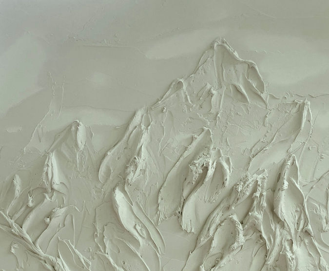 ' V E R B ' explores Verbier in Switzerland through texture and light, exposing mountain ski runs through expressive textural palette knife mark making and oil paint.